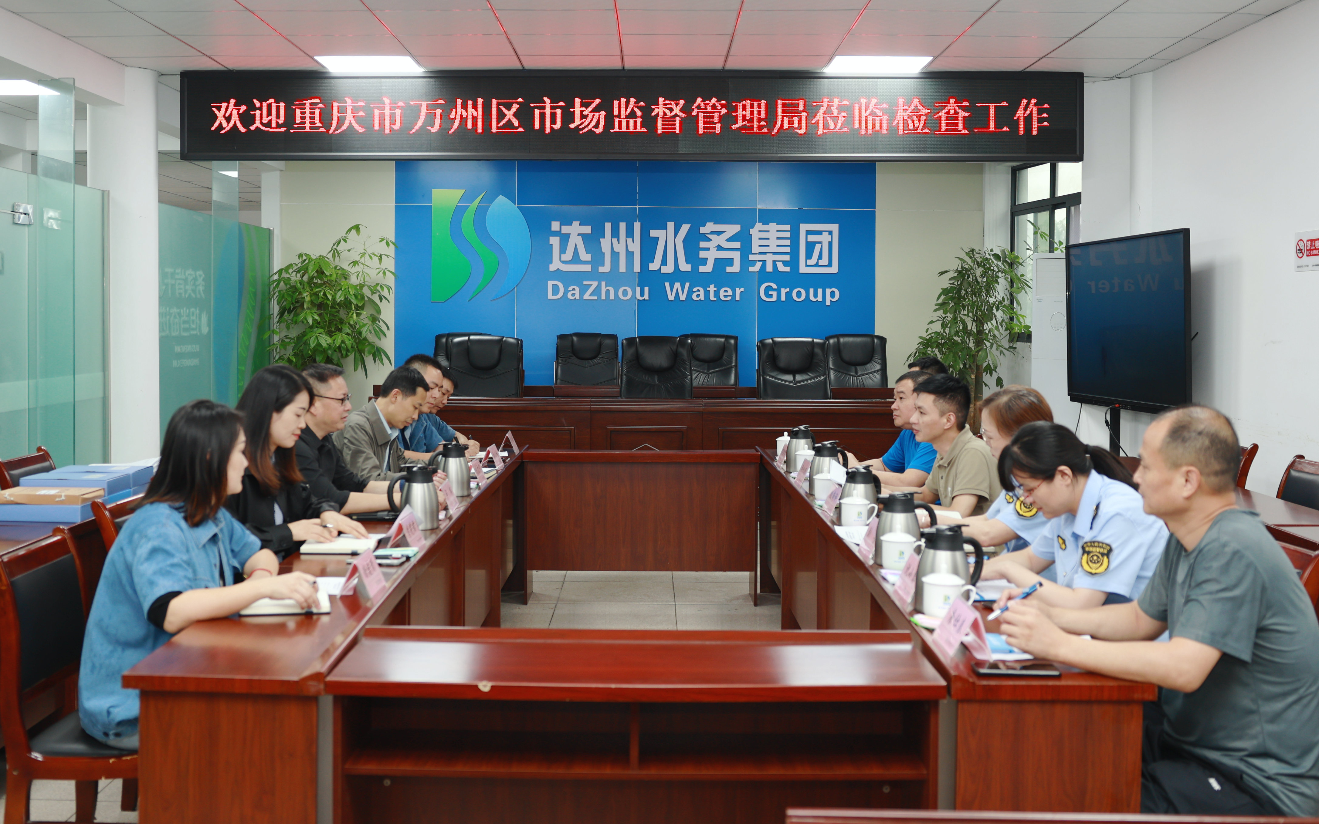 9月30日下午,重慶市萬州區(qū)市場監(jiān)督管理局副局長殷荷評帶隊(duì)赴達(dá)州水務(wù)集團(tuán)開展“川渝計(jì)量”交叉監(jiān)督檢查,集團(tuán)黨委書記、董事長盧輝,黨委委員、副總經(jīng)理?xiàng)盍?,黨委委員、副總經(jīng)理李莉君和集團(tuán)相關(guān)部門參加。
